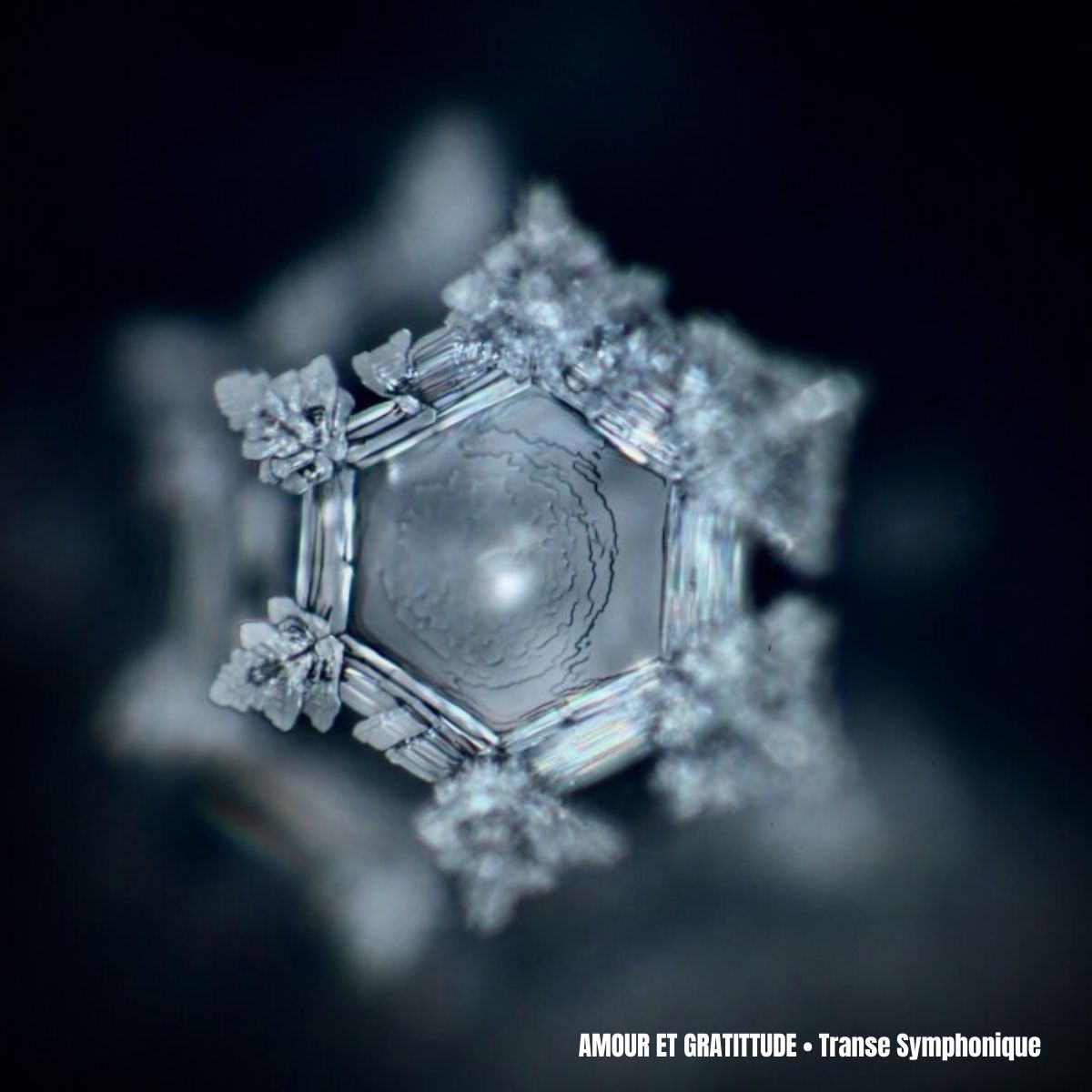 Voici le cristal formé par les vibration de cette œuvre a été photographié spécialement dans les bureaux du Docteur Masaru Emoto à Tokyo :