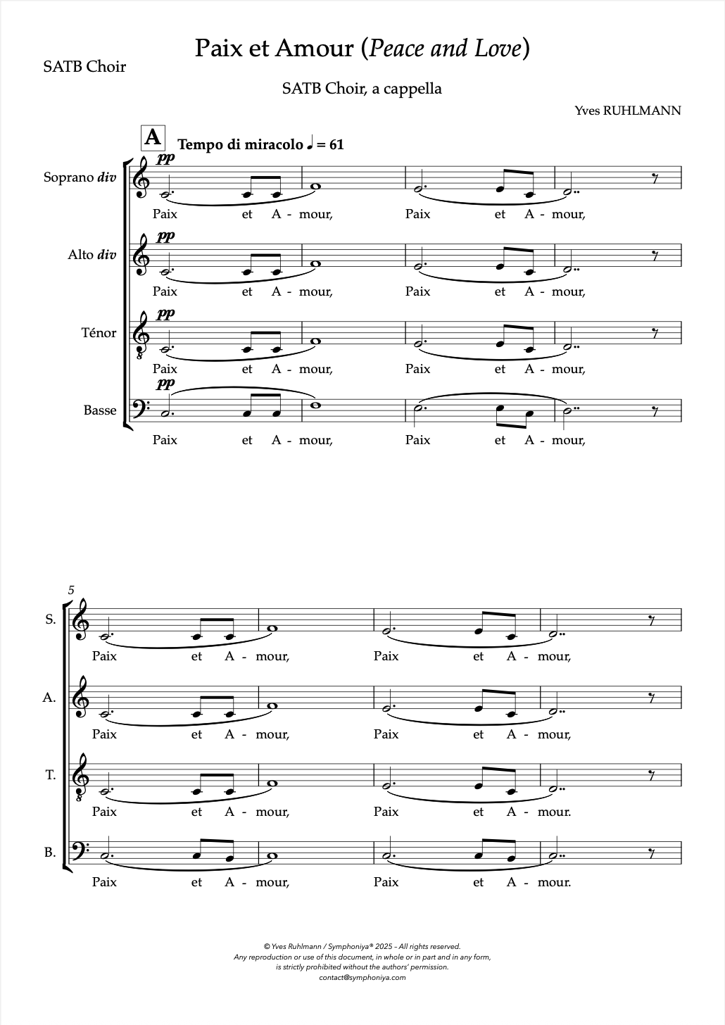 Paix et Amour (Peace and Love) – Choeur SATB a cappella | Partition